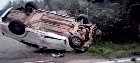 VEHÍCULO VOLCÓ ESTA MADRUGADA TRAS IMPACTAR CON UN POSTE CAMINO A HUERQUEHUE EN LA COMUNA DE PANGUIPULLI |
