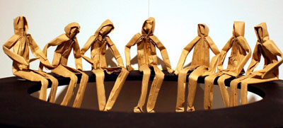 En esta exposición, el artista utiliza el papel como un lienzo tridimensional. A través de la técnica del origami gigante, propone nueve escenas en las que figuras de papel invitan al espectador a sumergirse en un mundo a escala reducida lleno de simbolismo, donde cada postura y cada gesto nos invitan a reflexionar: ¿Qué emociones o historias habitan en esos pequeños cuerpos de papel? Así, un elemento cotidiano —aparentemente frágil y simple— se transforma en una herramienta poderosa de expresión, capaz de generar mundos enteros en miniatura.