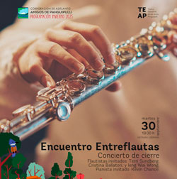 La celebración comenzará con el encuentro Entreflautas, en el que flautistas de todo Chile se reúnen para compartir junto a maestros internacionales de flauta traversa, que han sido invitados especialmente para esta ocasión. Una jornada doble que finalizará mañana martes 30 de septiembre con un concierto a las 19:00 horas en el Teatro Educativo de las Artes.