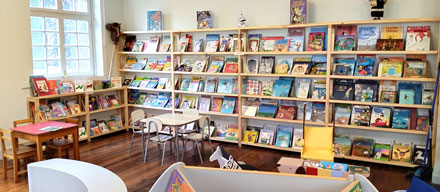 En la biblioteca existen espacios bien determinados para los niños, jóvenes y para los adultos, sumando una serie de títulos de autores clásicos, así como de nuevos escritores que están irrumpiendo con una serie de creaciones para todos los gustos.