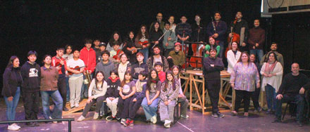 En escena confluyen alrededor de 40 intérpretes, entre ellos la orquesta del Centro Educativo San Sebastián, un grupo de 16 niños y niñas formados en un plan artístico durante todo el año, y actores profesionales de trayectoria como Gabriel Cañas, Annie Murath y Emma Pinto.