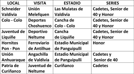 Es así como en la primera fecha hubo fútbol en Valdivia, Neltume, Liquiñe, Curiñanco y en el Estadio Municipal de Panguipulli.