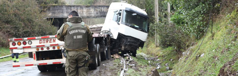 TRES ACCIDENTES CASI SIMULTÁNEOS SE PRODUJERON ESTE MEDIODÍA EN LA RUTA T-39, PANGUIPULLI - LOS LAGOS