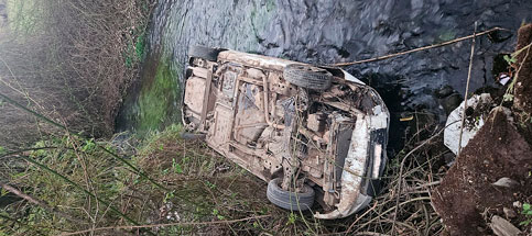 CONDUCTOR PIERDE CONTROL DE VEHÍCULO Y SE PRECIPITA A UNA ZANJA EN SECTOR EL SALTO DEL PUMA EN LA RUTA INTERNACIONAL HUA HUM